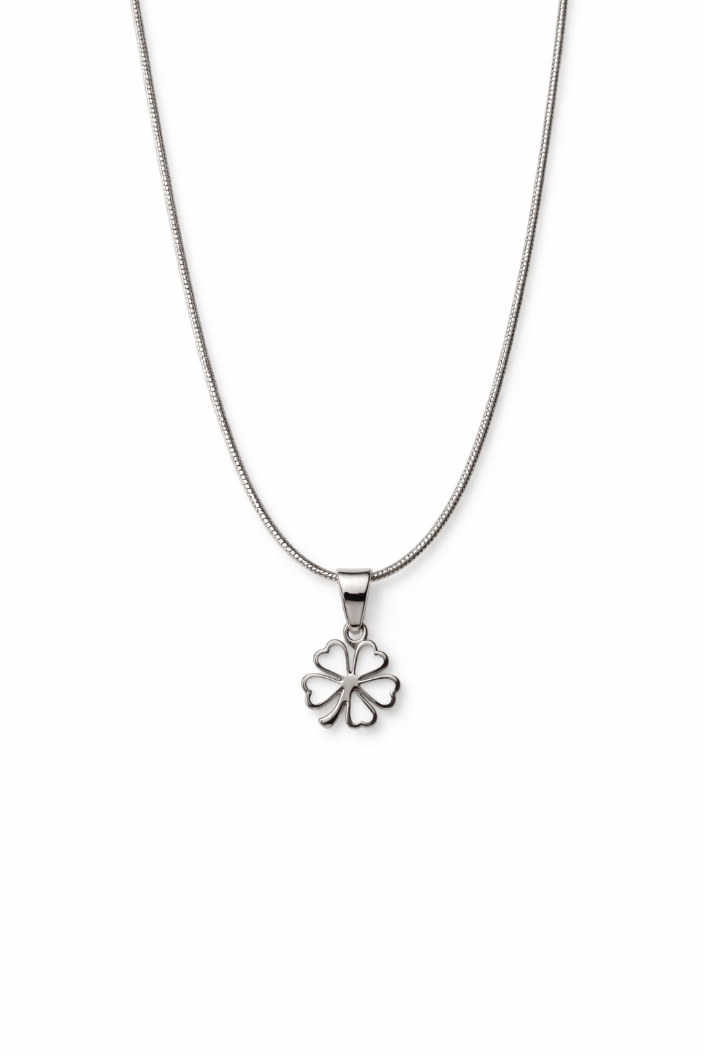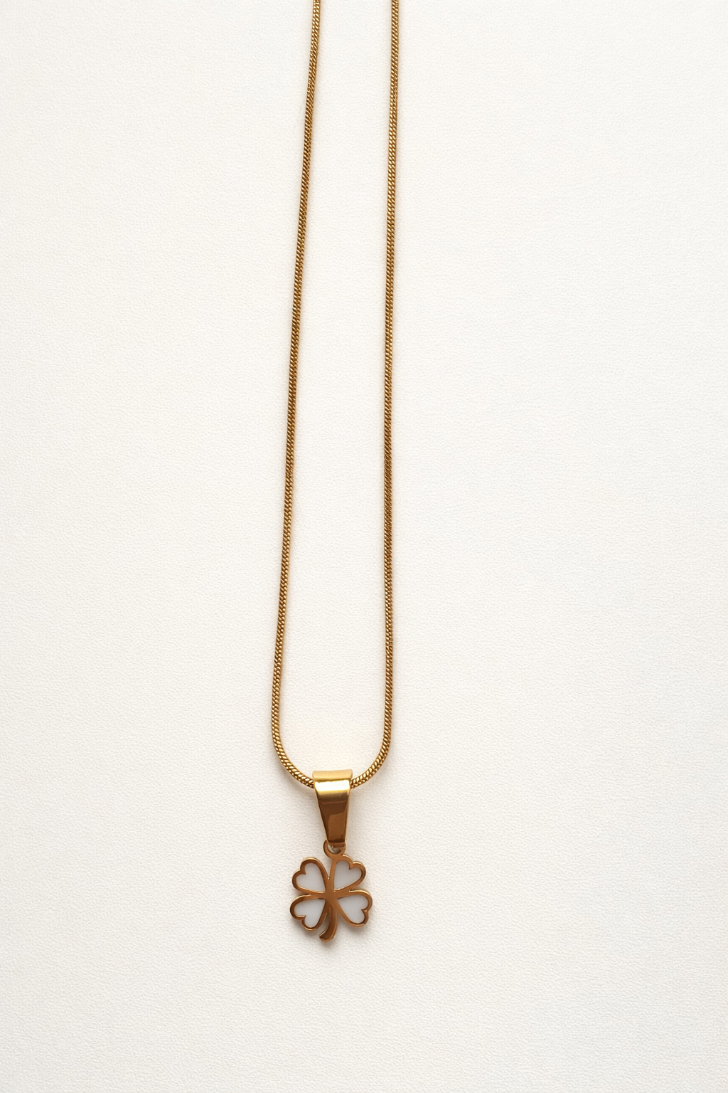 שרשרת עדינה בעבודת יד מסטיינלס-סטיל עם תליון תלתן 4 עלים במילוי לבן שמרגיש כמו “מזל קטן” ליד הלב: תזכורת שקטה שהדברים יכולים להסתדר, ושמותר לך לנשום גם כשהכול קורה מהר.